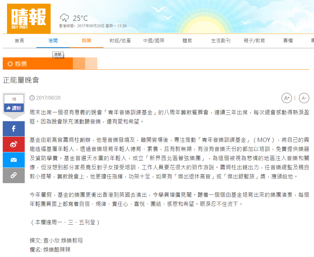 有關MOY的最新媒體報導如下。要翻閱過去的報導,請看「目錄」。
